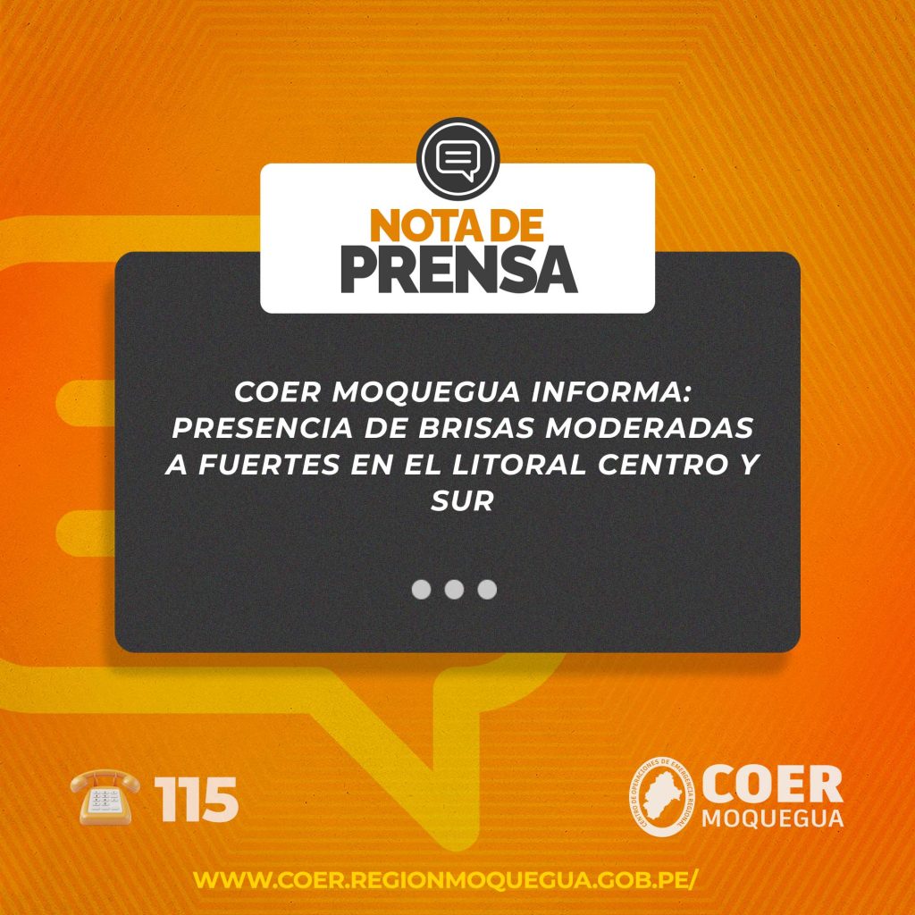 COER MOQUEGUA INFORMA: PRESENCIA DE BRISAS MODERADAS A FUERTES EN EL LITORAL CENTRO Y SUR