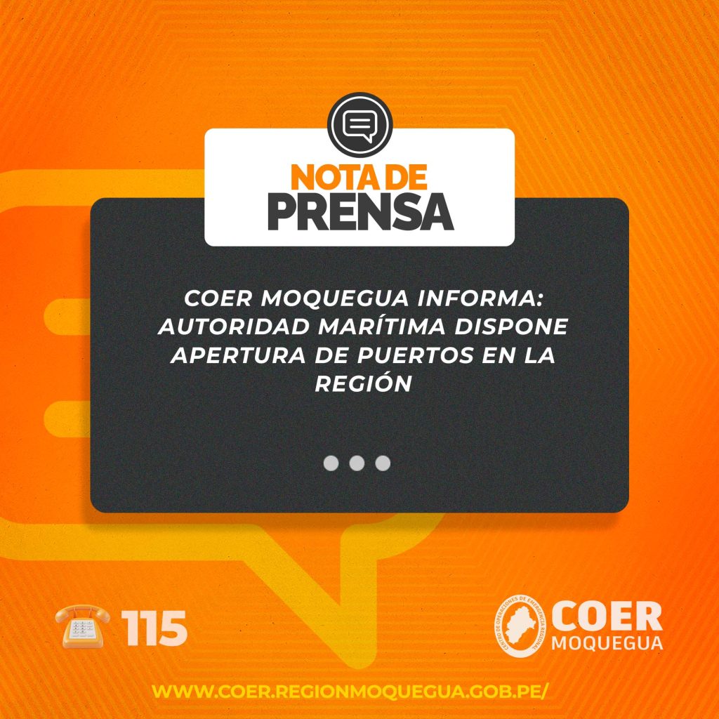 COER MOQUEGUA INFORMA: AUTORIDAD MARÍTIMA DISPONE APERTURA DE PUERTOS EN LA REGIÓN