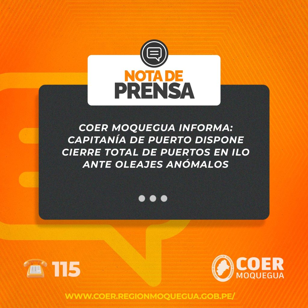 El Centro de Operaciones de Emergencia Regional (COER) Moquegua monitorea permanentemente la situación y coordina con las autoridades competentes para brindar información oportuna a la población.