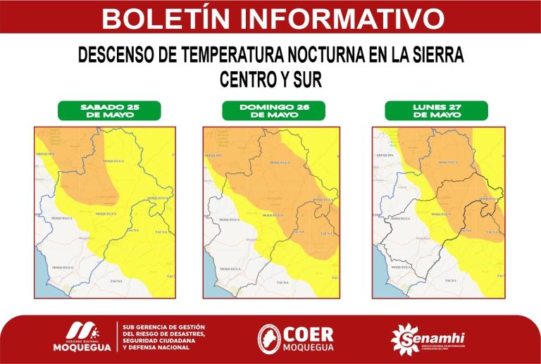 SENAMHI EMITE AVISO METEOROLÓGICO CON PRONÓSTICO DE DESCENSO DE TEMPERATURA NOCTURNA EN LA SIERRA CENTRO Y SUR
