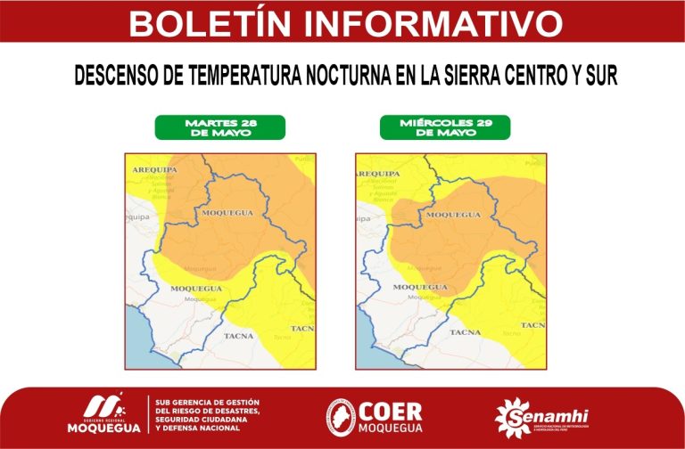 -14 °C en localidades sobre los 4,000 m.s.n.m. en la sierra sur. Ante esta situación, el COER Moquegua recomienda a la población tomar las siguientes precauciones: