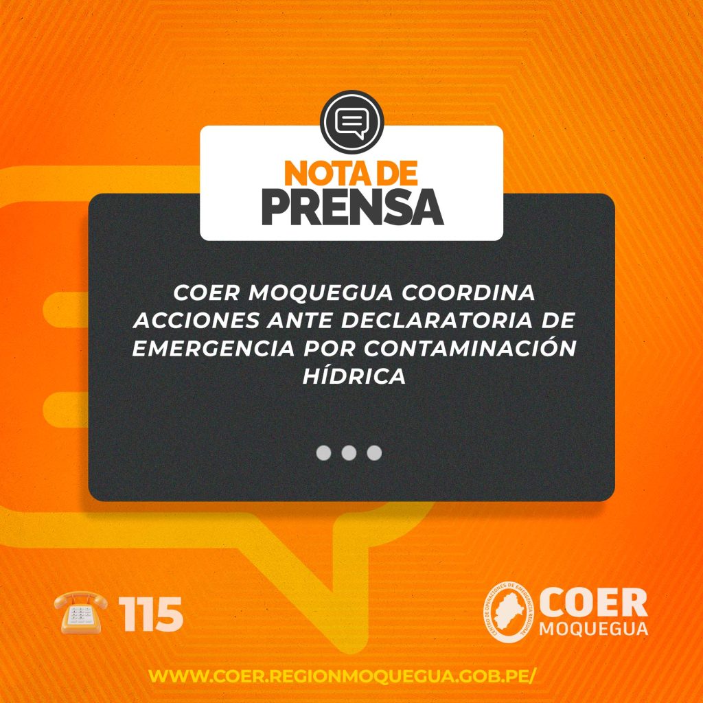 COER MOQUEGUA COORDINA ACCIONES ANTE DECLARATORIA DE EMERGENCIA POR CONTAMINACIÓN HÍDRICA
