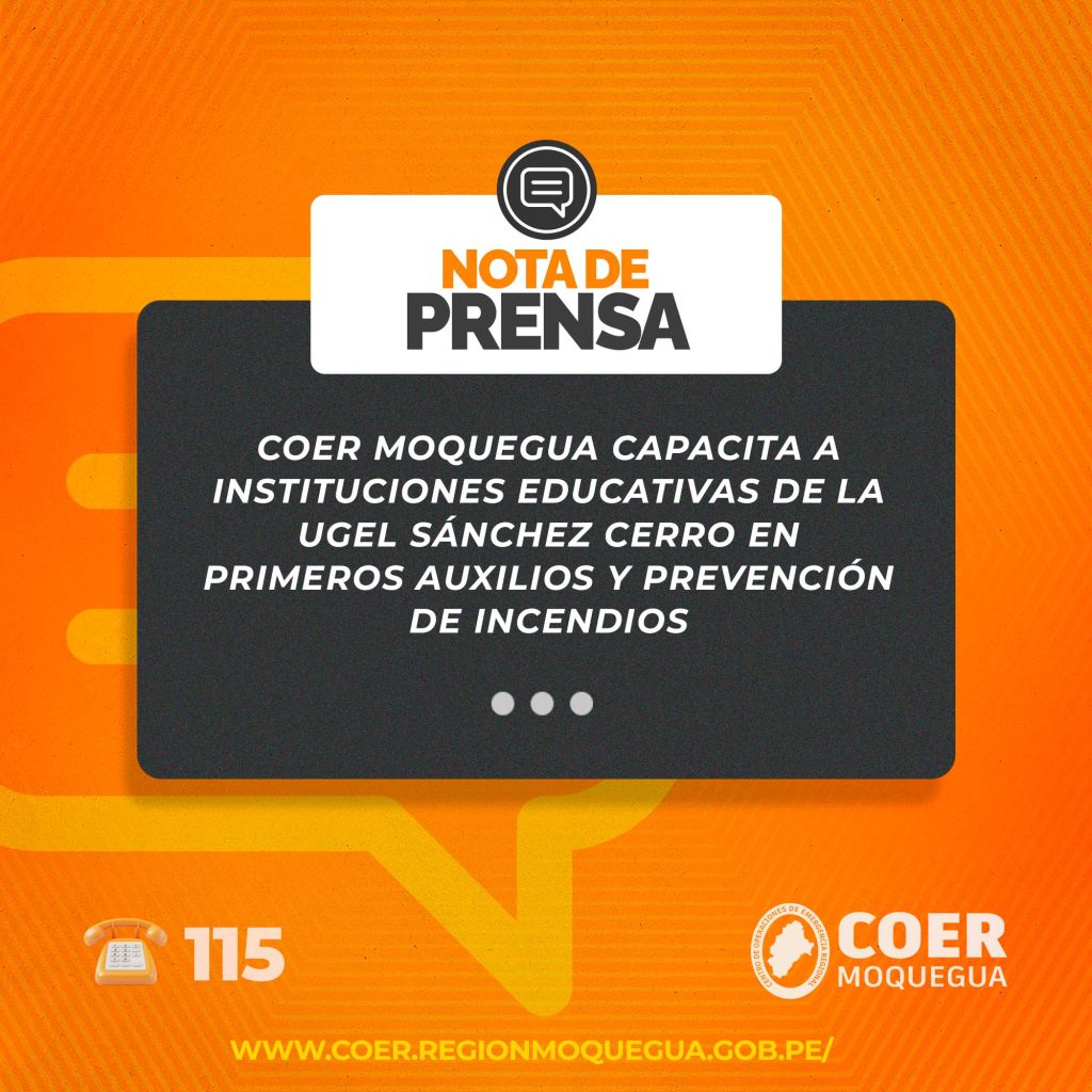 COER MOQUEGUA CAPACITA A INSTITUCIONES EDUCATIVAS DE LA UGEL SÁNCHEZ CERRO EN PRIMEROS AUXILIOS Y PREVENCIÓN DE INCENDIOS