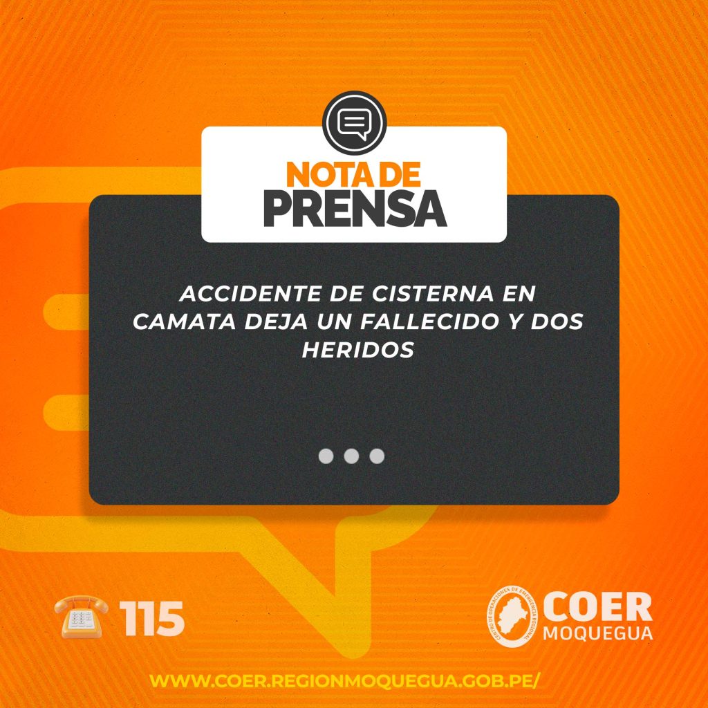 COER MOQUEGUA INFORMA: ACCIDENTE DE CISTERNA EN CAMATA