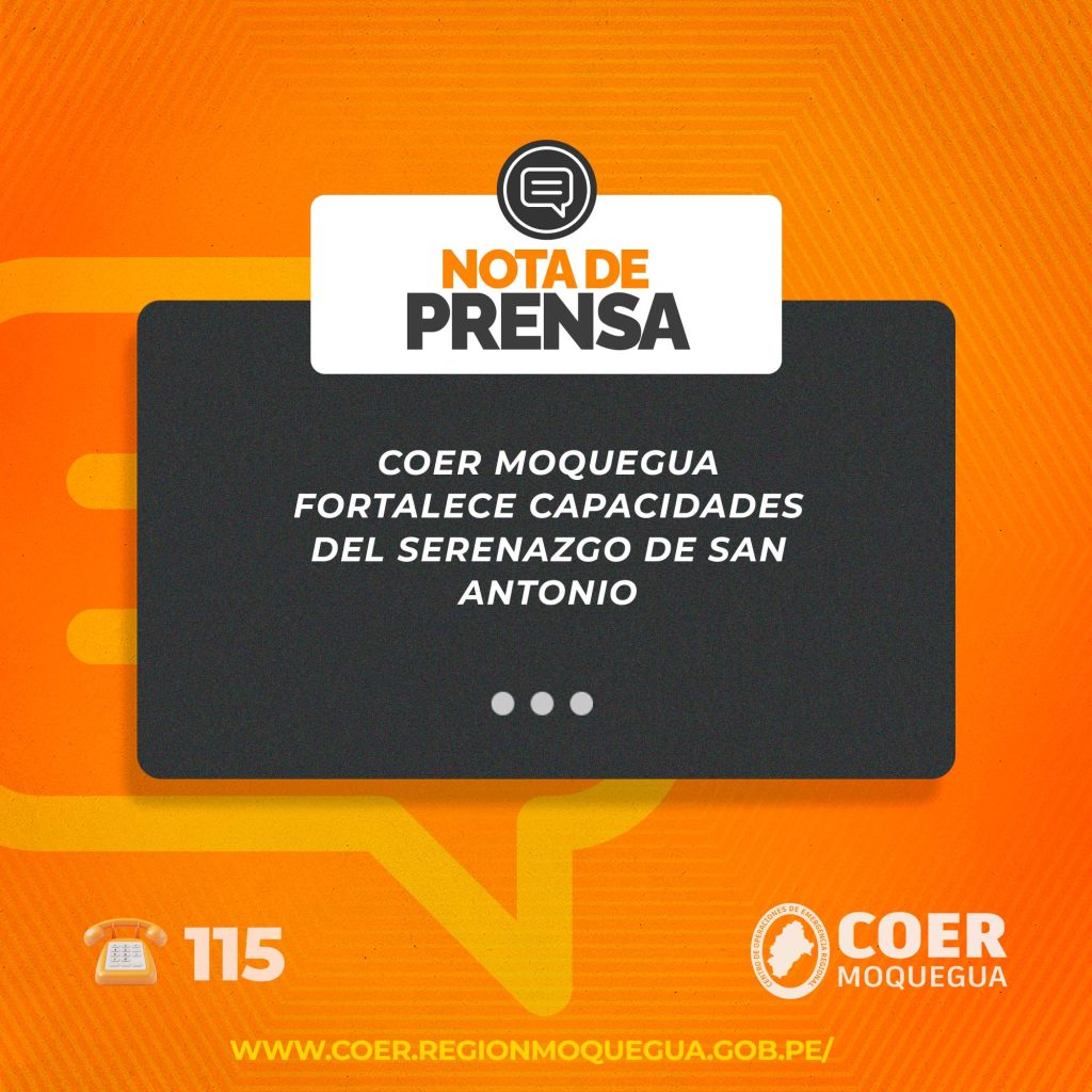 COER MOQUEGUA FORTALECE CAPACIDADES DEL SERENAZGO DE SAN ANTONIO