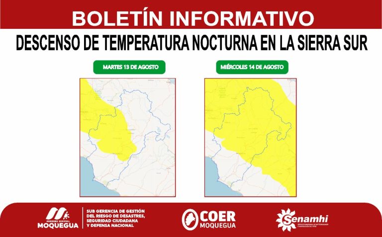 temperatura nocturna en la sierra sur del país, incluida la región Moquegua.