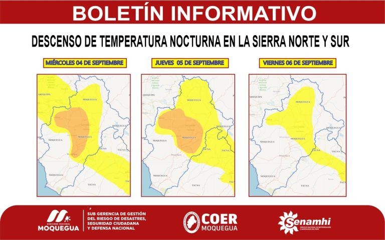 diurna. El nivel de peligro para Moquegua es amarillo y naranja.