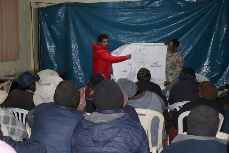El primero en recibir la información fue el centro poblado de Sacohaya, donde el Subgerente de Gestión del Riesgo de Desastres, Seguridad Ciudadana y Defensa Nacional, Ing. Juan Paredes Urviola en representación de la gobernadora regional de Moquegua, Gilia Gutiérrez Ayala junto al representante de la Tercera Brigada Blindada, Cmdte. EP Oscar Arana Gómez, escucharon además las inquietudes de los asistentes.