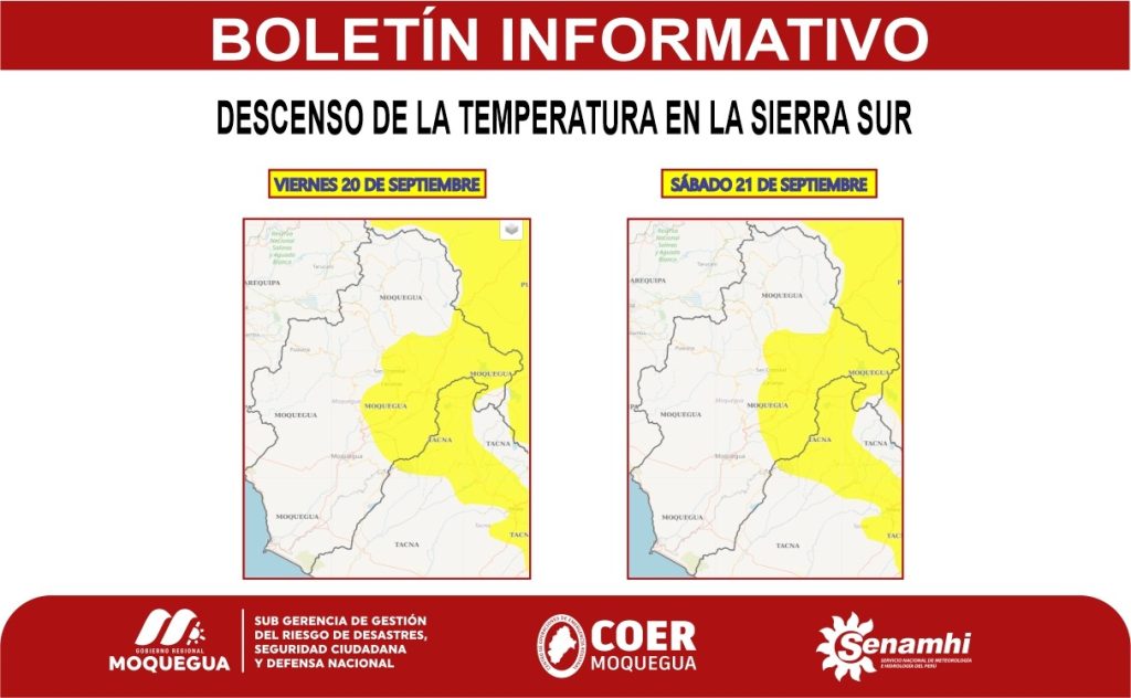 temperatura nocturna de moderada intensidad en la sierra sur del país, incluida