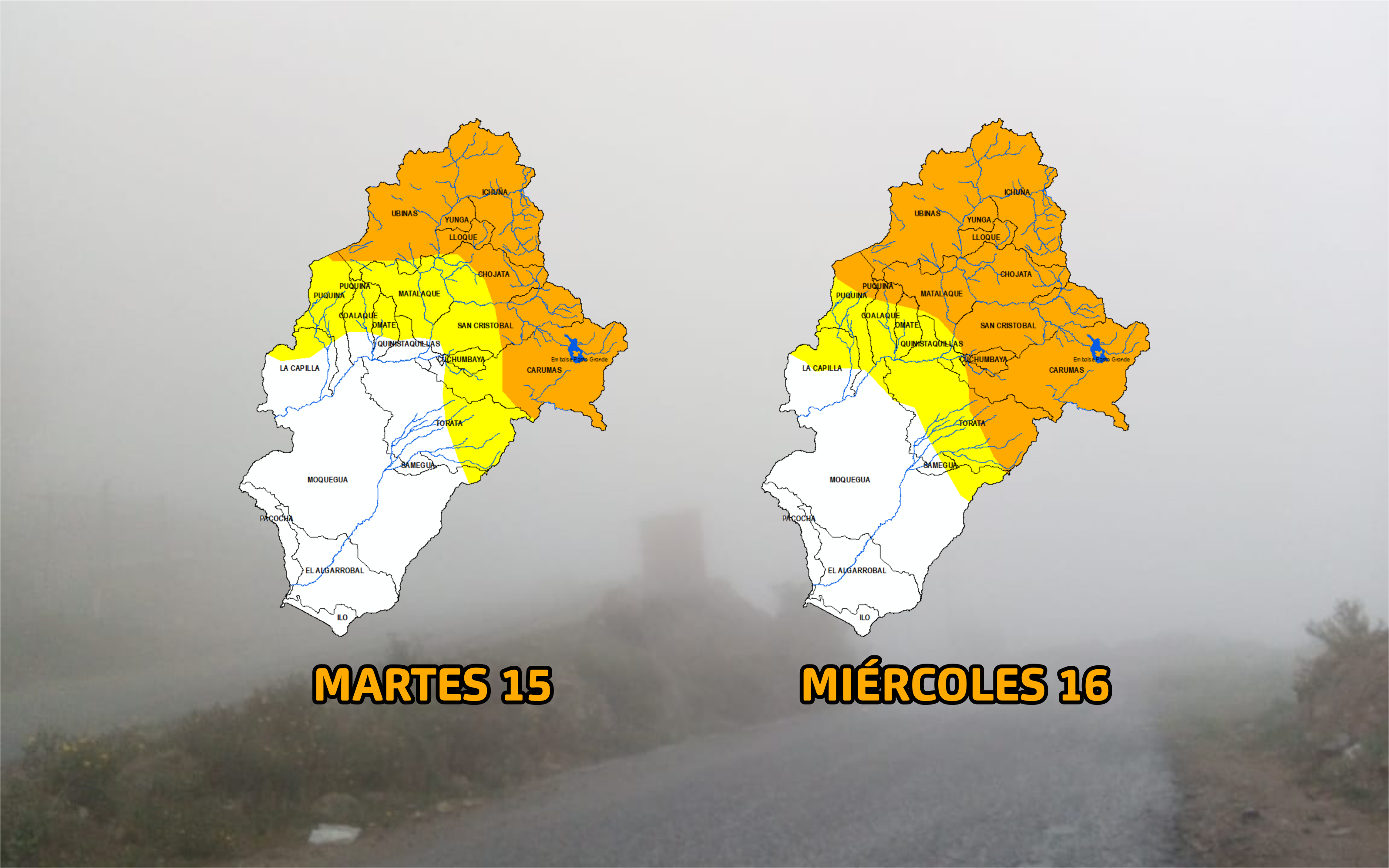 SENAMHI EMITE AVISO METEOROLÓGICO DE NIVEL NARANJA PRONOSTICANDO PRECIPITACIONES EN LA SIERRA DE MOQUEGUA