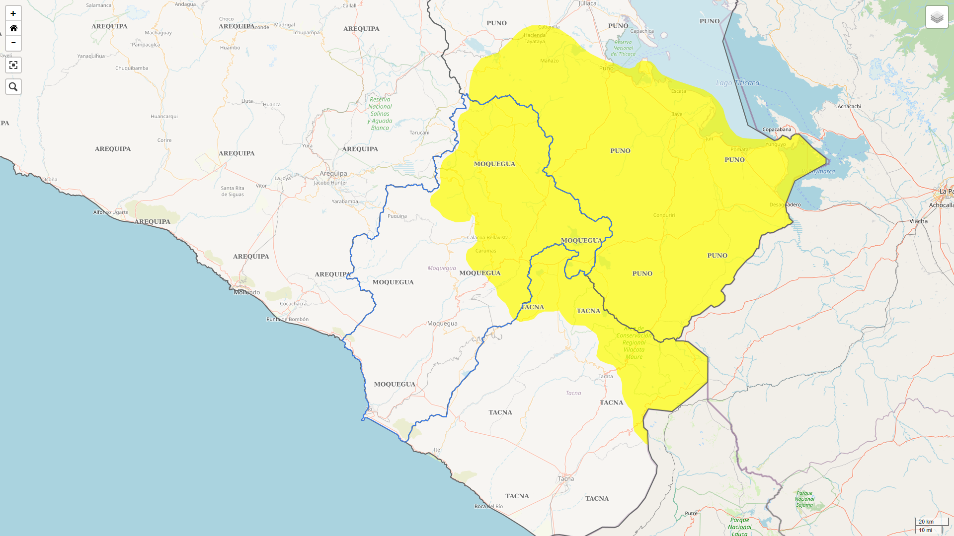Precisan que, el sábado 28 de agosto, se prevén vientos con velocidades alrededor de los 30 km/h, el cual podría presentarse en los distritos de Ubinas, Ichuña, Yunga, Lloque, Puquina, Coalaque, Omate, Matalaque, Chojata y Quinistaquillas en la Provincia General Sánchez Cerro. En la Provincia Mariscal Nieto, considera los distritos de San Cristóbal, Carumas, Cuchumbaya y Torata.